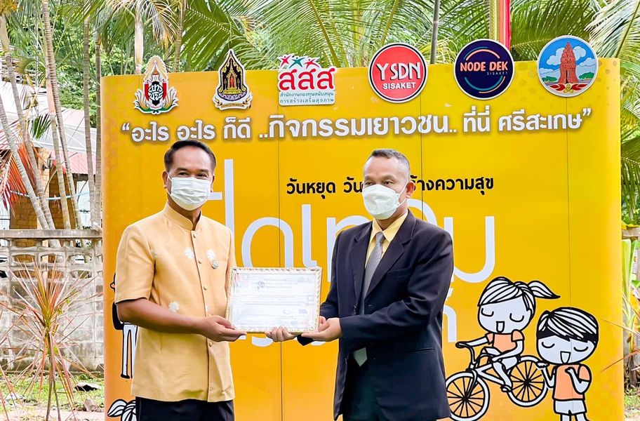 รับโล่รางวัล กับท่านผู้ว่าราชการจังหวัดศรีสะเกษ กลุ่มเด็กและเยาวชนที่มีผลงานการดำเนินโครงการที่มีความโดดเด่นเป็นที่ประจักษ์ และรางวัลองค์กรทำคุณประโยชน์แก่สภาเด็กและเยาวชนจังหวัดศรีสะเกษ14 ตุลาคม 2565