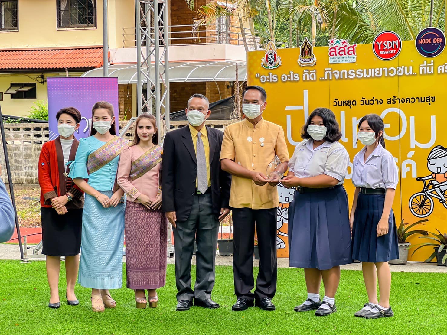 รับโล่รางวัล กับท่านผู้ว่าราชการจังหวัดศรีสะเกษ กลุ่มเด็กและเยาวชนที่มีผลงานการดำเนินโครงการที่มีความโดดเด่นเป็นที่ประจักษ์ และรางวัลองค์กรทำคุณประโยชน์แก่สภาเด็กและเยาวชนจังหวัดศรีสะเกษ